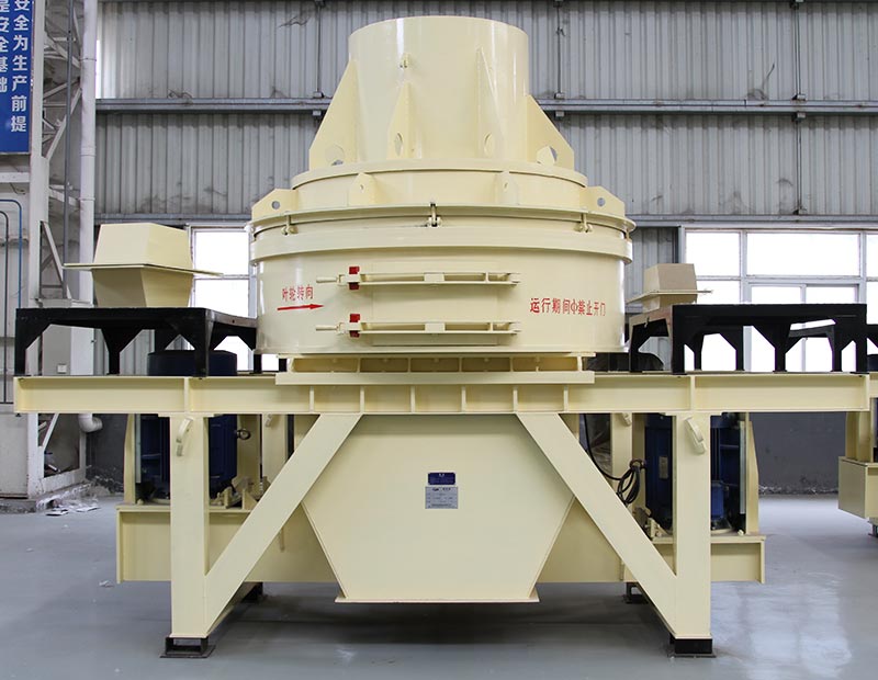 物料由進(jìn)料斗進(jìn)入制砂機(jī),經(jīng)分料器將物料分成兩部分,一部分由分料器中間進(jìn)入高速旋轉(zhuǎn)的葉輪中,在葉輪內(nèi)被迅速加速,其加速度可達(dá)數(shù)百倍重力加速度,然后以60-70米/秒的速度從葉輪三個(gè)均布的流道內(nèi)拋射出去,首先同由分料器四周自收落下的一部分物料沖擊破碎,然后一起沖擊到渦支腔內(nèi)物料襯層上,被物料襯層反彈,斜向上沖擊到渦動(dòng)腔的頂部,又改變其運(yùn)動(dòng)方向,偏轉(zhuǎn)向下運(yùn)動(dòng),從葉輪流道發(fā)射出來(lái)的物料形成連續(xù)的物料幕。這樣一塊物料在渦動(dòng)破碎腔內(nèi)受到兩次以至多次機(jī)率撞擊、磨擦和研磨破碎作用。被破碎的物料由下部排料口排出。