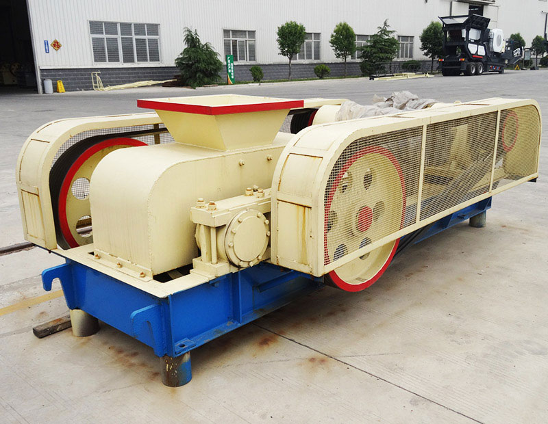 對輥破碎機是利用兩組單獨傳動的輥軸,相對旋轉(zhuǎn)產(chǎn)生的擠軋力和磨剪力來破碎物料。當物料進入機器的破碎腔以后,物料受到轉(zhuǎn)動輥軸的嚙力作用,使物料被逼通過兩輥之間,同時受到輥軸的擠軋和剪磨,物料即開始碎裂,碎裂后的小顆粒沿著輥子旋轉(zhuǎn)的切線,通過兩輥軸的間隙,向機器下方拋出,超過間隙的大顆粒物料,繼續(xù)被破碎成小顆粒排出。
