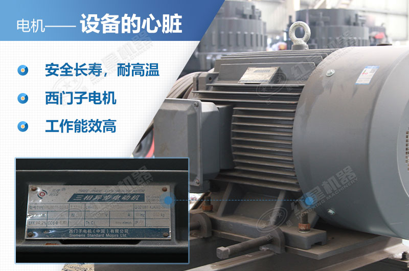 紅星機(jī)器設(shè)備所選用的均為西門子品牌電機(jī),保證客戶的使用安全,而且絕緣性強(qiáng),電機(jī)使用壽命長,高性能軸承及潤滑,耐高溫,可連續(xù)長期運(yùn)行。1416破碎機(jī)的電機(jī)是根據(jù)其作業(yè)中的實(shí)際數(shù)據(jù)和操作情況而配合的電機(jī),達(dá)到更高的效率等級,不僅作業(yè)方便,也能為用戶節(jié)省能耗。