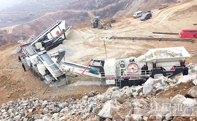 設備配置:履帶移動鄂式破碎機+履帶移動圓錐式破碎機+履帶移動篩分機